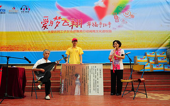 2011年9月,廈門國貿(mào)集團聯(lián)手廈門廣電集團閩南之聲欄目與文安小學,結(jié)合助學行動,在文安小學舉辦了一場“愛與夢飛翔 幸福手拉手——關愛農(nóng)民工子女志愿服務行動閩南文化進校園活動”,將閩南傳統(tǒng)文化南音、傀儡戲帶入文安小學。兩位資深老師妙語連珠的講課,不但調(diào)動全場孩子的熱情,同時讓學生們切身感受到閩南文化博大精深的韻味。